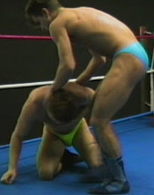 The camera is close and Rip lets Jimmy go and rolls him over onto his back for a luscious view of Rip's meaty, beautiful butt and Jimmy's amazing package! Then it's 2 calculated hard punches to the abdomen. Jimmy is really getting whipped!!